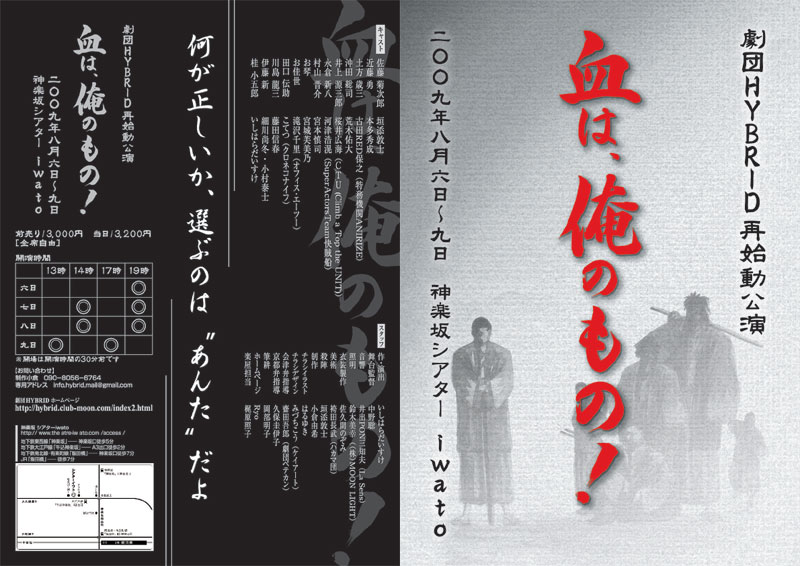 まずは8月6日の初日が迫ってます劇団HYBRID公演「血は、俺のもの!」を